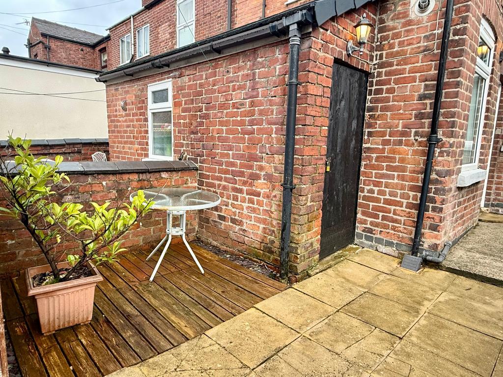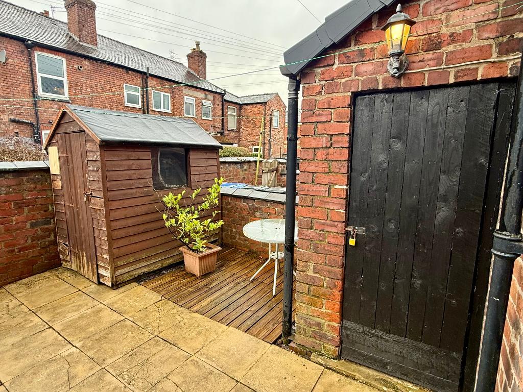 Outside, in addition to the small garden frontage, the property boasts a rear patio courtyard garden and timber decked area, ideal for al fresco dining or enjoying the sunshine .There is also a power/ lit outbuilding and a handy timber shed for further storage.