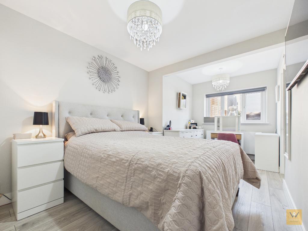 11' 4'' x 12' 4'' (3.47m x 3.77m) Another double bedroom, neutrally decorated and featuring attractive wood paneling to one wall to create an elegant focal point. UPVC double glazed window to the front. Radiator. Laminate floor.