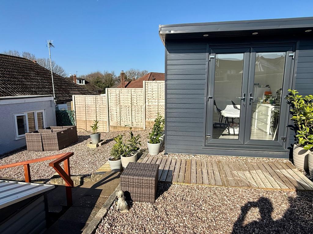 To the rear steps lead up from the side of the shed to the tiered garden which has been set of for ease of maintenance. A composite clad outbuilding offers a range of uses. The outbuilding measures 3.02m x 3.02m