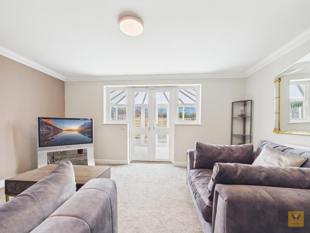 Step through the welcoming entrance hall and discover a thoughtfully arranged ground floor layout. To the left, the tastefully fitted breakfast kitchen is perfect for casual family meals, while a convenient downstairs W.C. is situated just to the right. To the rear, a spacious living room makes an inviting hub for relaxing or entertaining and flows seamlessly on to a bright, generous conservatory. Double doors from the conservatory open out to a compact, low-maintenance rear garden with the lake beyond the garden fence and enjoying outdoor moments with minimal upkeep.