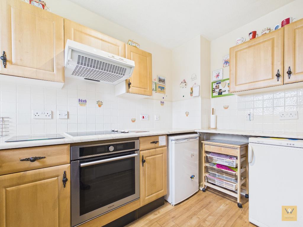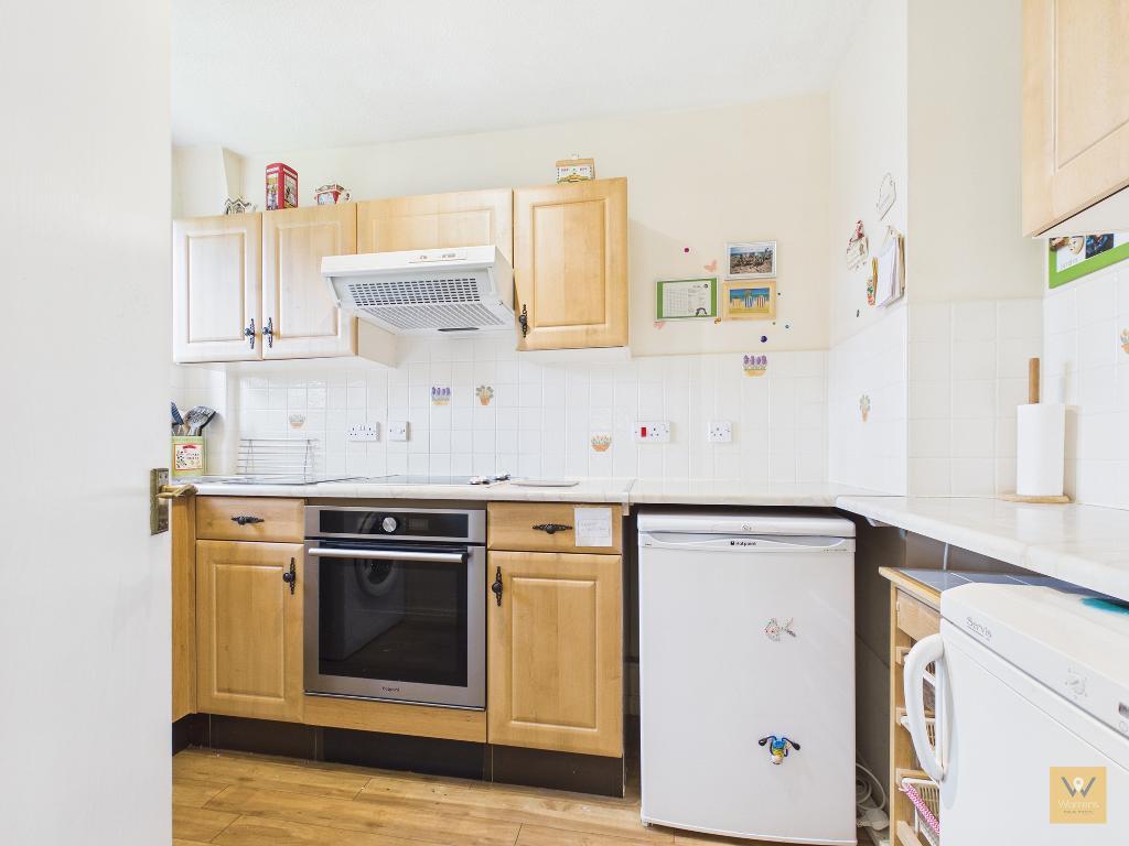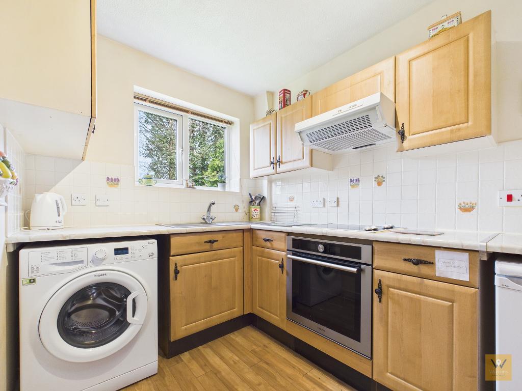 Off the living room lies a fitted kitchen. The sink sits beneath a UPVC window which frames the view to the communal gardens to the rear.