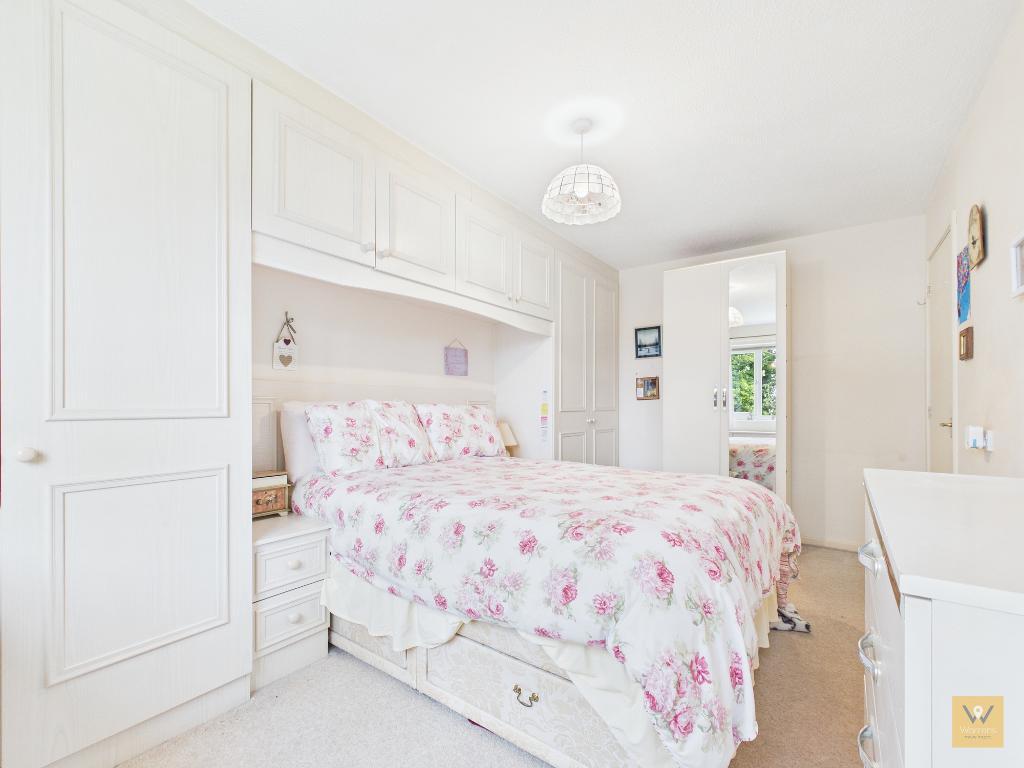 The principal bedroom benefits from a comprehensive range of fitted wardrobes, providing ample storage, while the second double bedroom offers versatile space for guests or hobbies. Off the central hall is a well-equipped bathroom complete with modern fittings.