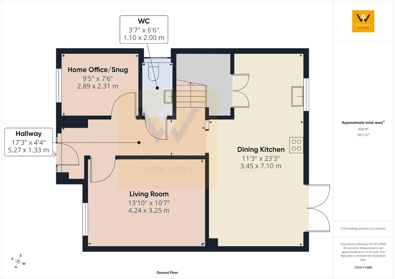 Fitted welcome mat area to a tiled floor which flows seamlessly into the kitchen. Radiator. Doors to the living room, office, downstairs w.c. and an opening to the dining kitchen. Turned staircase to the first floor.