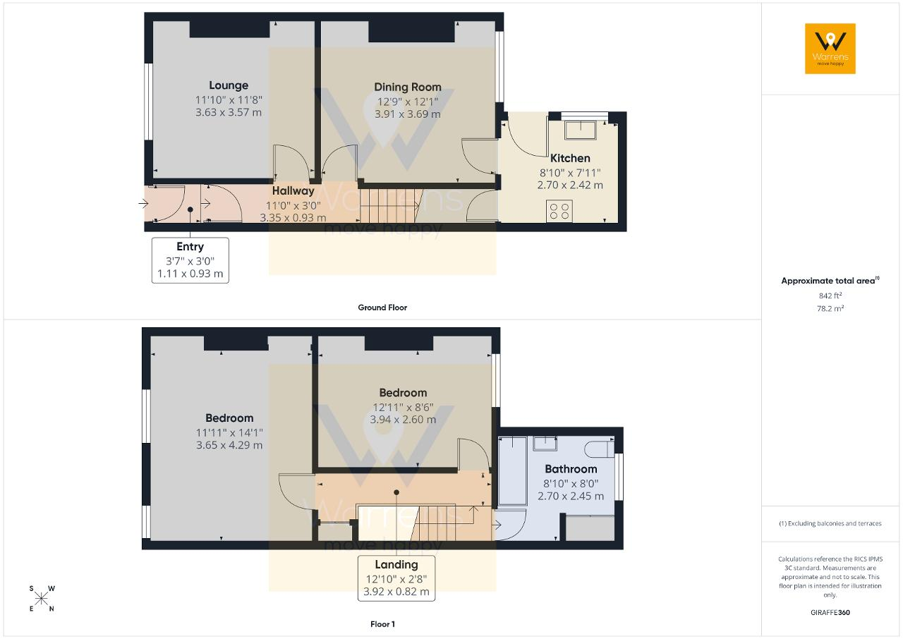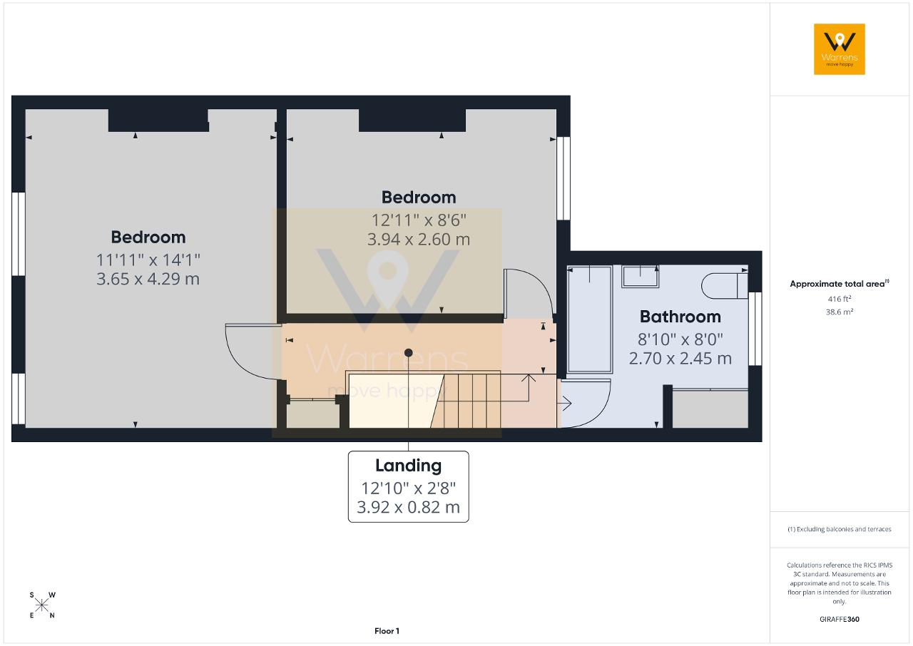 Head back to the hall and head upstairs to the landing. Off the landing there is an excellent size double bedroom to the front and another double bedroom to the rear. Last, but not least there is the white modern bathroom/w.c.
