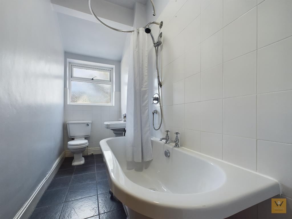 10' 10'' x 4' 7'' (3.31m x 1.41m) Fitted with a three piece suite comprising bath with shower over, low level wc and a wash basin. Part tiled walls. Tiled flooring. Double glazed window.