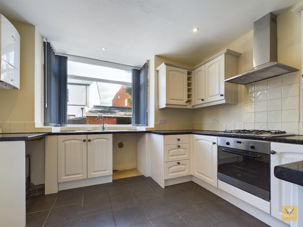 The kitchen comprises a range of wall, drawer and base units. Roll top work tops incorporate a stainless steel sink and drainer. Integrated electric oven with gas hob and stainless steel extractor fan over. Spaces for further kitchen appliances. Double glazed bay window. Double glazed door leading out to the garden.