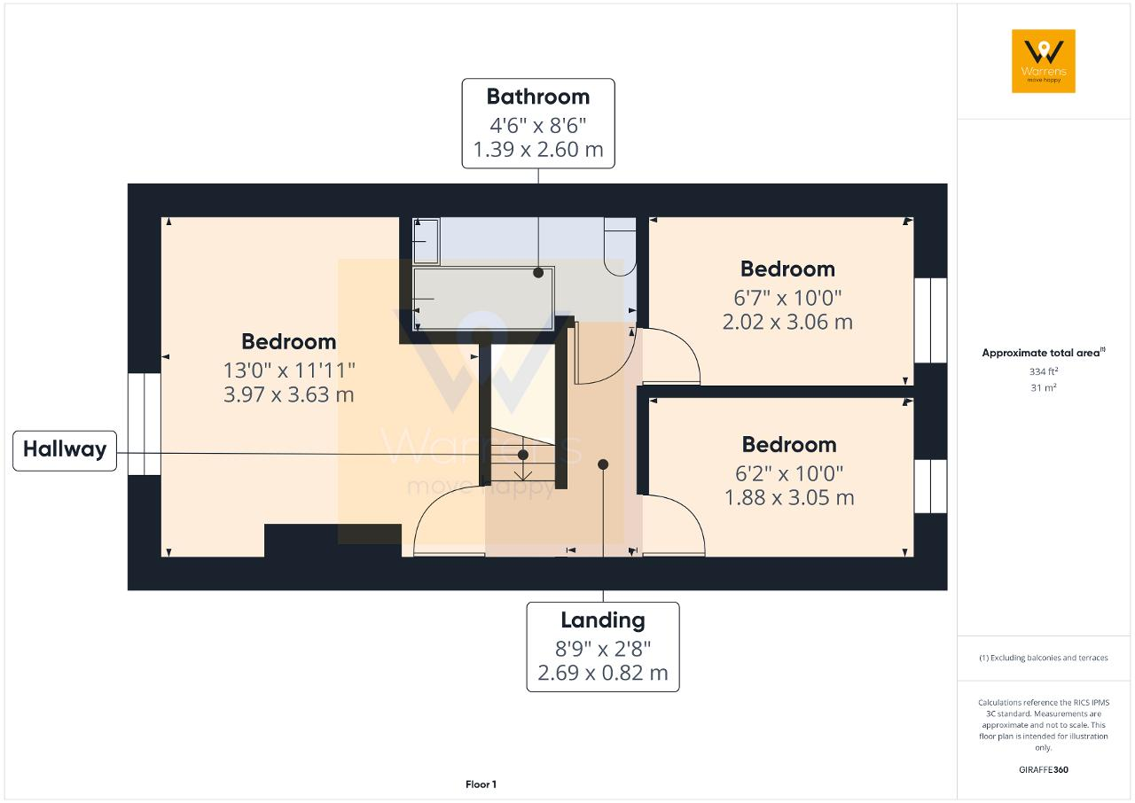 From the inner hall, stairs lead to a first floor landing. Off the landing there is a double bedroom to the front, two single bedrooms and a bathroom/w.c.