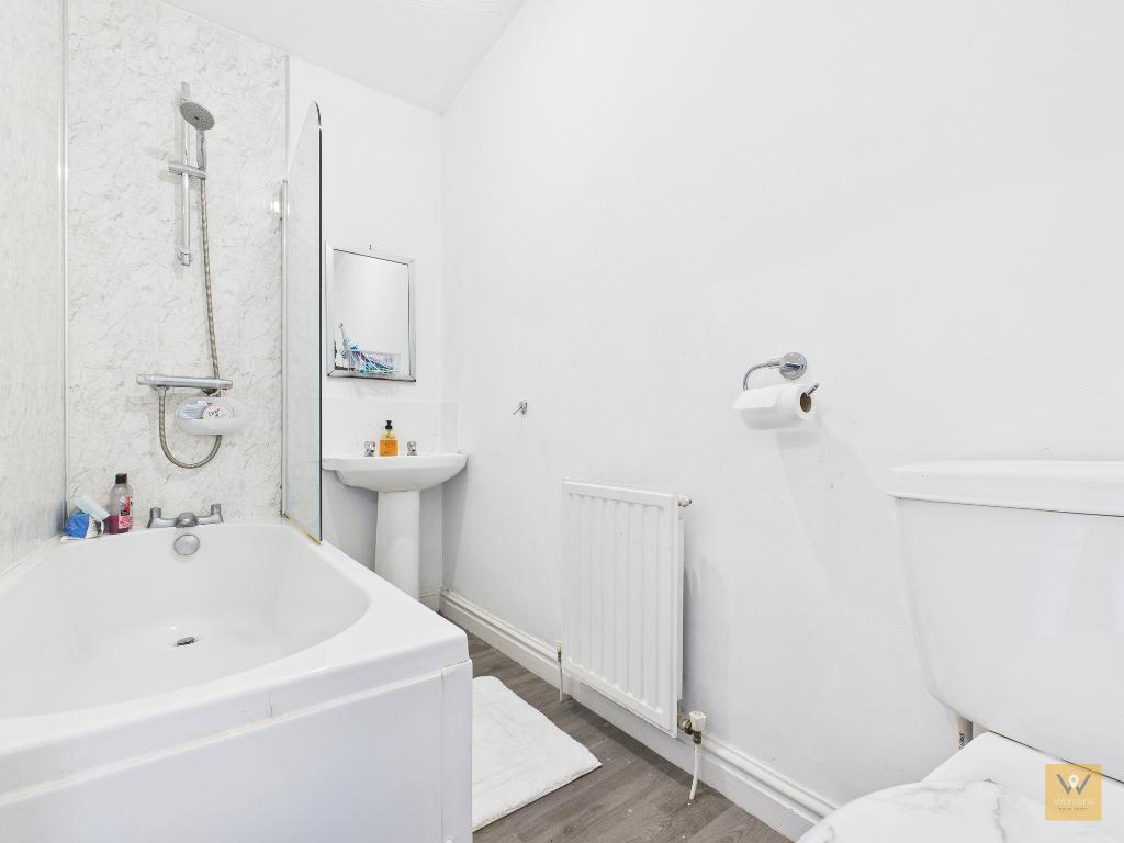 4' 6'' x 8' 6'' (1.39m x 2.6m) Fitted with a three piece suite comprising panelled bath with shower over and shower screen, low level W.C., wash basin. Radiator. Extractor fan.