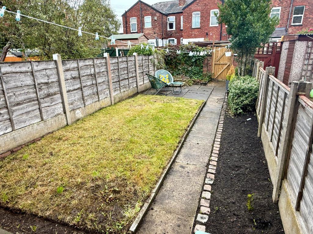 The rear garden is part paved, part lawn with borders. A timber gate gives access to the rear access. Post panelled fencing.