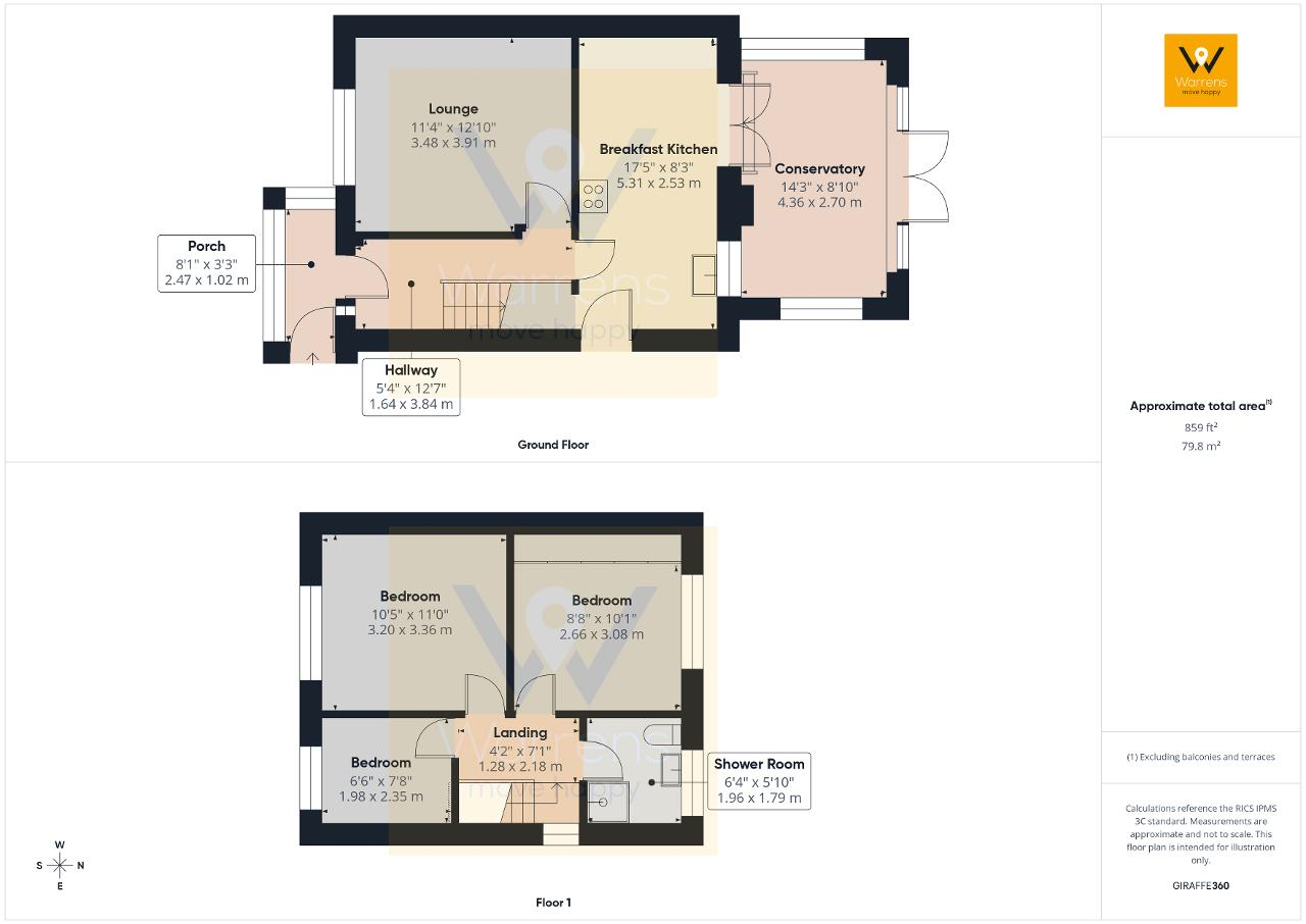 Upstairs you will find three bedrooms (two doubles and a single) and a shower room/w.c.