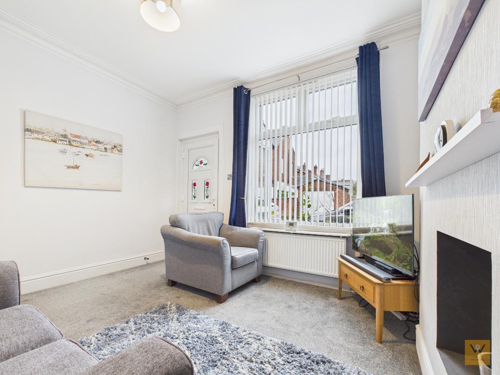 UPVC double glazed window to the front aspect. Ornamental 'hole in the wall' in the chimney breast (for decorative purpose) with a mantle over. Ceiling coving. Radiator.