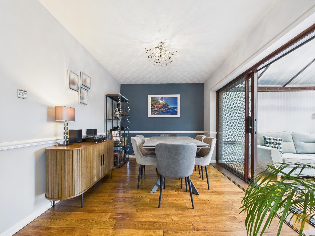 Cross the threshold into the hallway. There is a downstairs w.c. on your right. To your left the door into the living room; a spacious room to the front of the property. The dining room (open to the stylish modern kitchen) is also off the hallway.