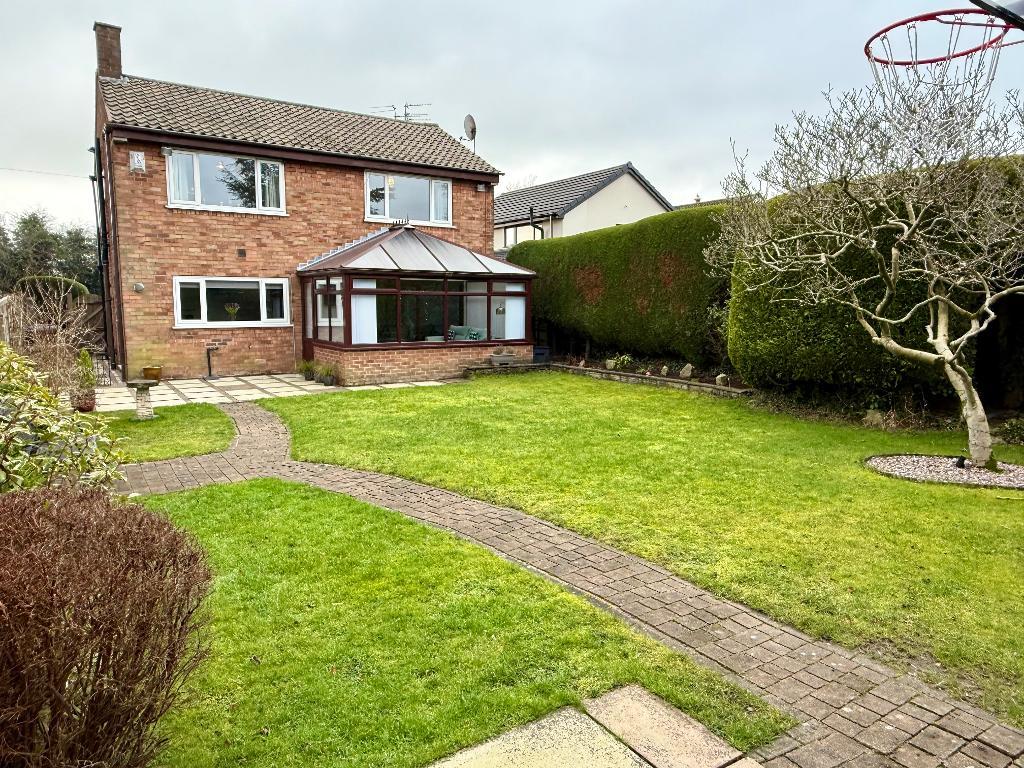 To the rear there is a paved patio area off the conservatory. This extends to the lawn garden with a paved path and borders, Again the hedge is manicured.