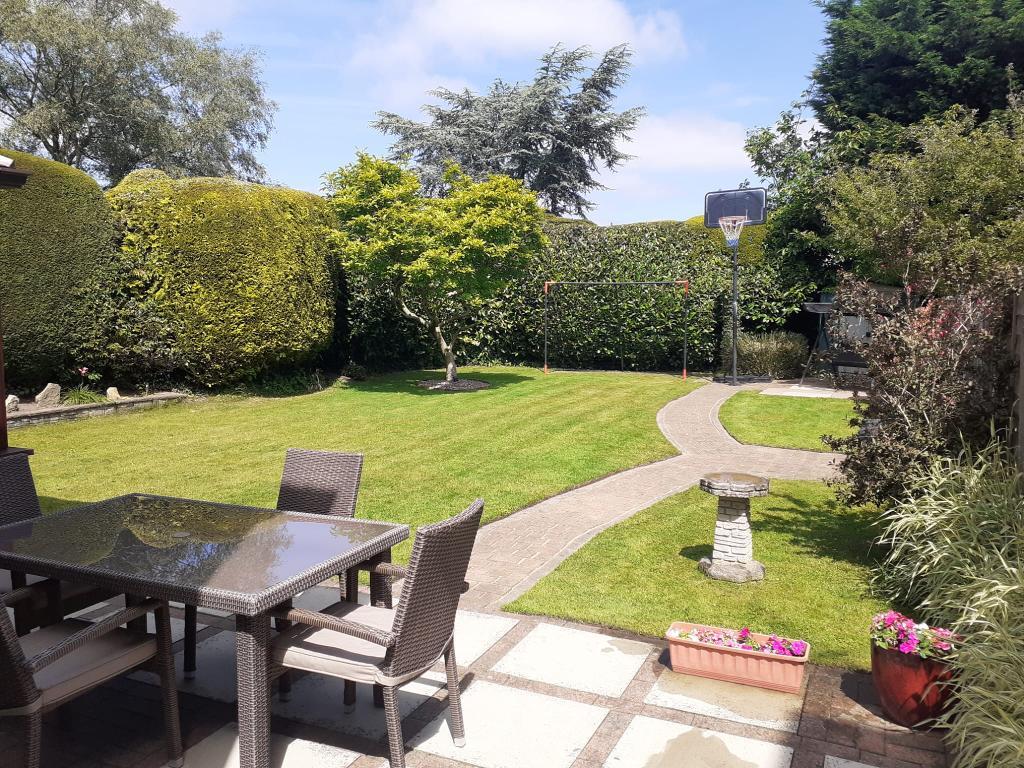 To the rear there is a paved patio area off the conservatory. This extends to the lawn garden with a paved path and borders, Again the hedge is manicured..