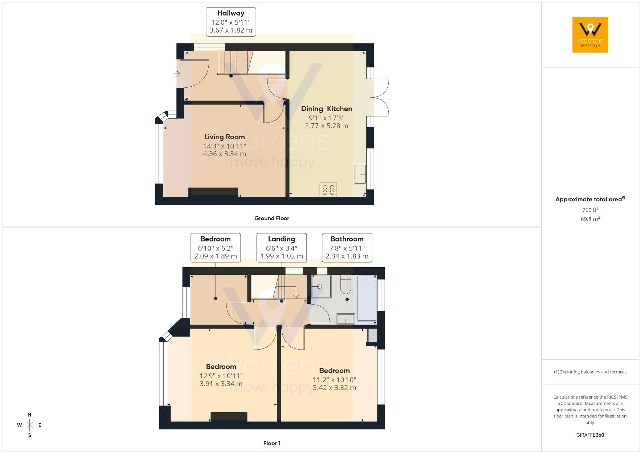 Upstairs you will find the landing, three bedrooms (two double) and the four piece bathroom/w.c.