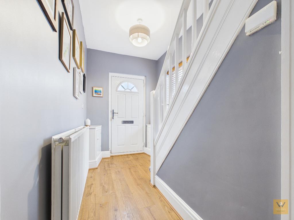 Laminate floor. Radiator. UPVC double glazed window to the side. Spindle balustrade staircase to the first floor.