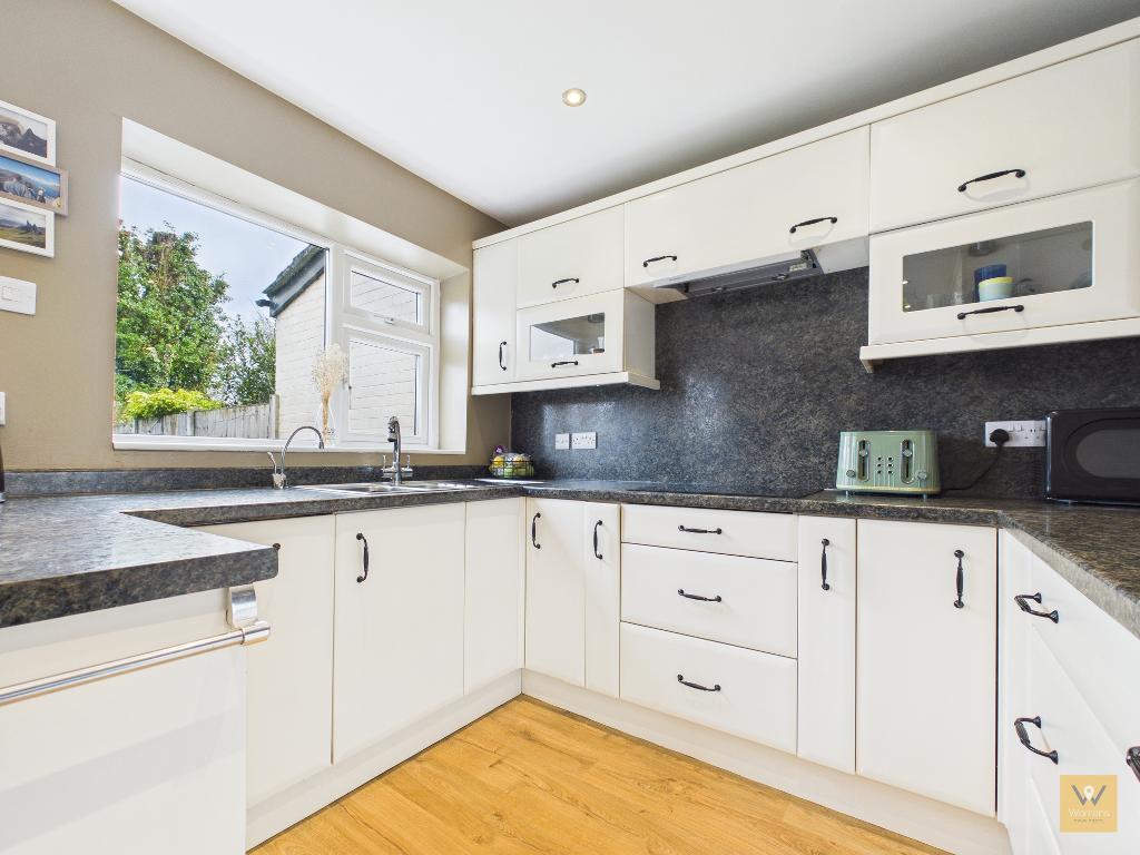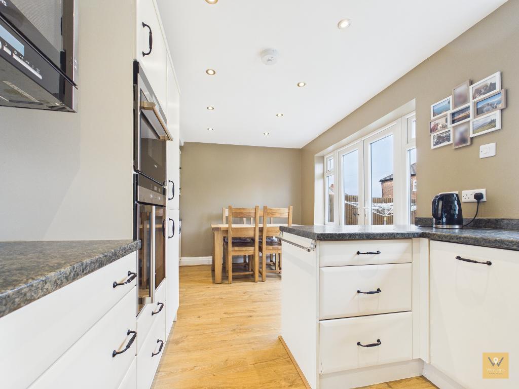 Situated across the rear the dining area flows into the fitted kitchen as is the fashion. With the UPVC French Doors opening to the rear garden it's a light, bright space afforded the benefit being a great for allowing a social gathering to spill outside for Al Fresco dining/ entertainment.