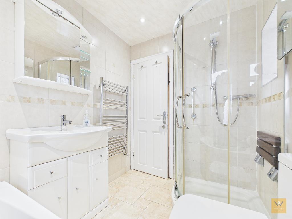 7' 7'' x 6' 0'' (2.34m x 1.83m) A fully tiled bathroom/ w.c with a four piece suite comprising a paneled bath (with a mixer tap shower), a separate shower cubicle , a low level w.c. and a wash hand basin housed in a vanity unit. UPVC double glazed window to the rear. Chrome effect heated towel rail.