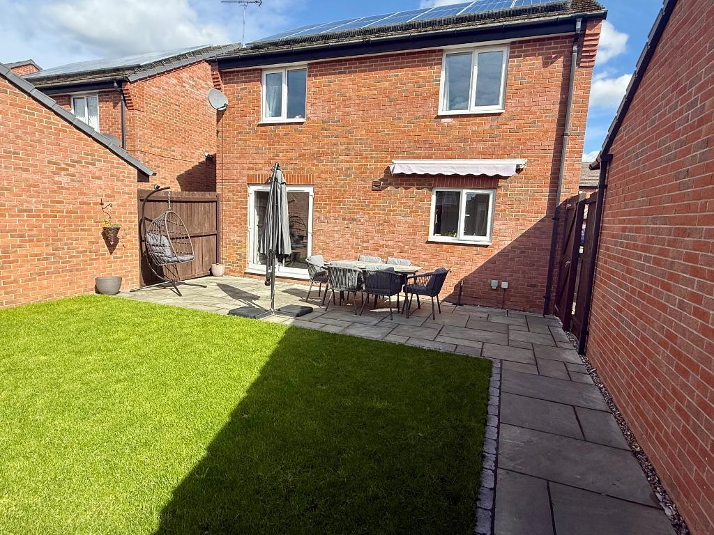 Step through the front door and you"ll be welcomed by a spacious, inviting hallway complete with an elegant turned staircase leading to the first floor. On one side, a flexible reception room offers endless possibilities; perfect as a media room, peaceful home office, or a cosy snug. On the opposite side is the generous and stylish living room, providing the ideal spot for relaxation. The contemporary open-plan dining kitchen is thoughtfully situated across the rear of the home, designed in a white high gloss finish that reflects light throughout the space. Modern, integrated appliances are already fitted, while a useful utility cupboard with plumbing for a washing machine is thoughtfully concealed for convenience. Patio doors open directly to the rear garden, creating a seamless connection to the outdoors; ideal for entertaining when social gatherings spill outside.