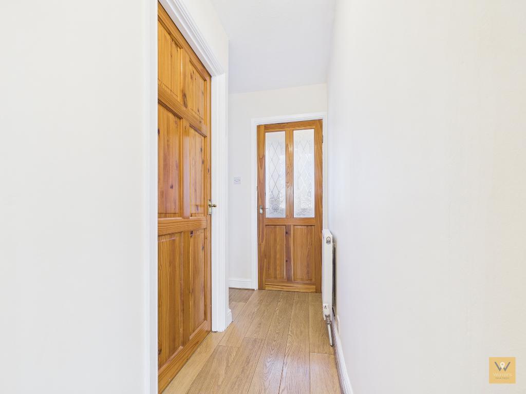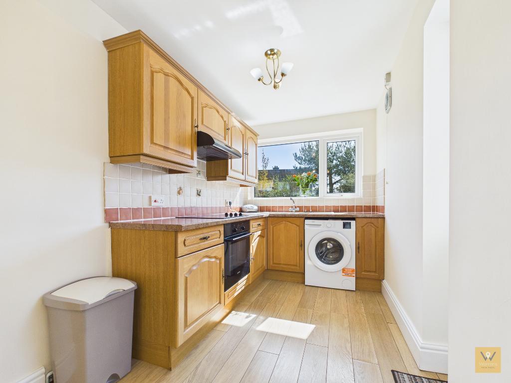 6' 6'' x 17' 10'' (2m x 5.44m) Fitted with wall, drawer and base units. Integrated electric oven and hob with extractor hood over. Space for a washing machine. Laminate worktop incorporates sink and drainer. laminate flooring. radiator. Double glazed window to the rear aspect. Double glazed door to the side aspect.
