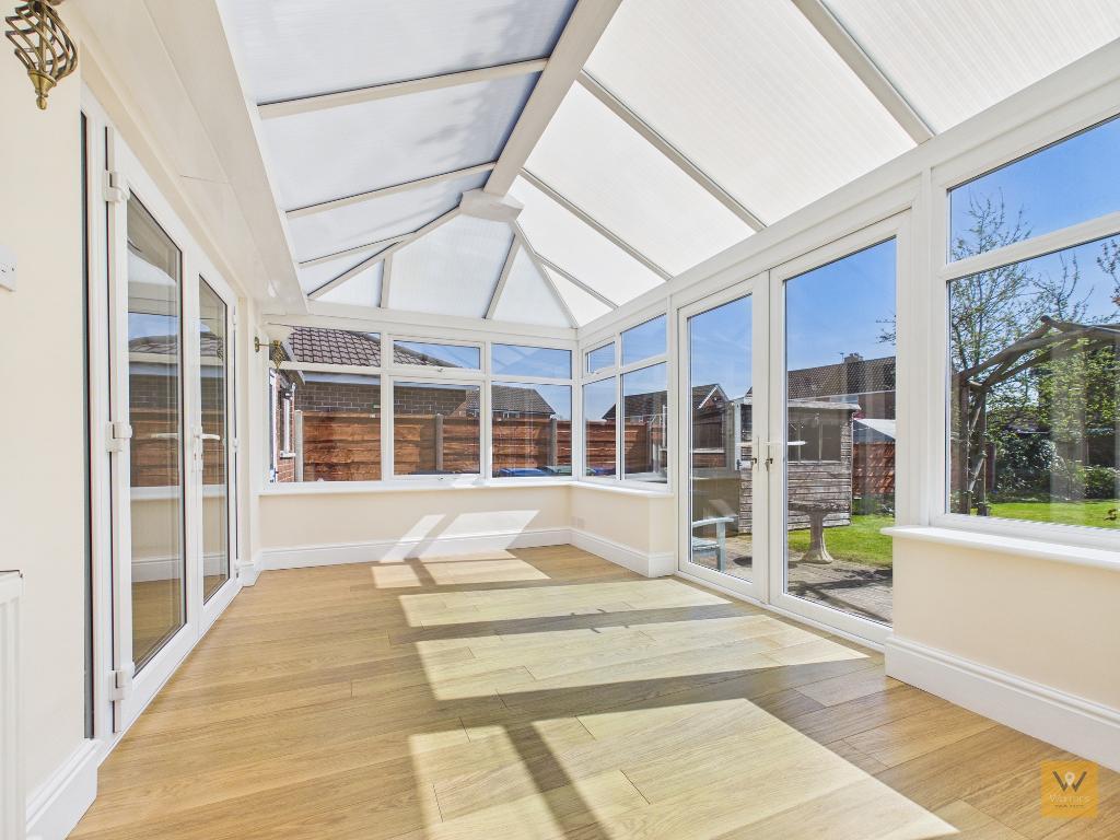 15' 9'' x 8' 10'' (4.82m x 2.71m) Double glazed conservatory with double doors leading out to the rear garden. Laminate flooring. Radiator. Wall lights.