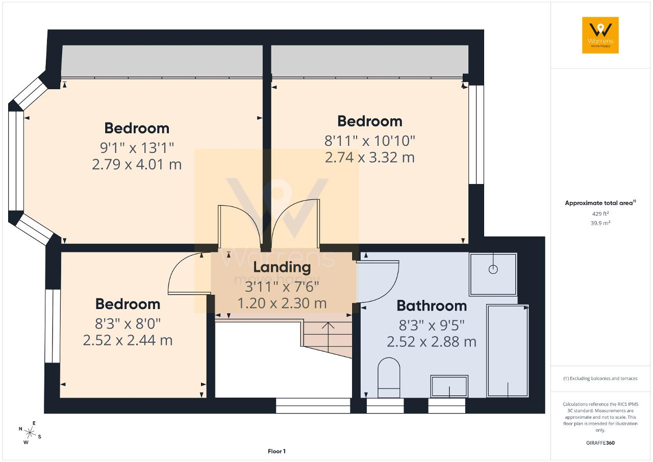 3' 11'' x 4' 3'' (1.2m x 1.3m) Spindle balustrade staircase with chrome spindles. Double glazed window to the side elevation.