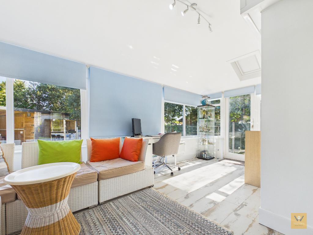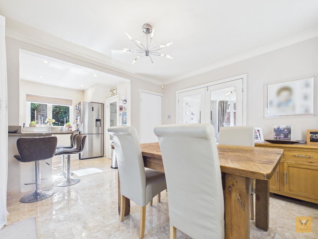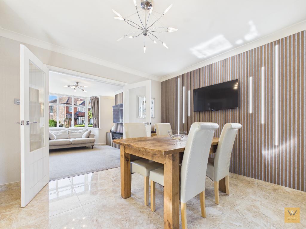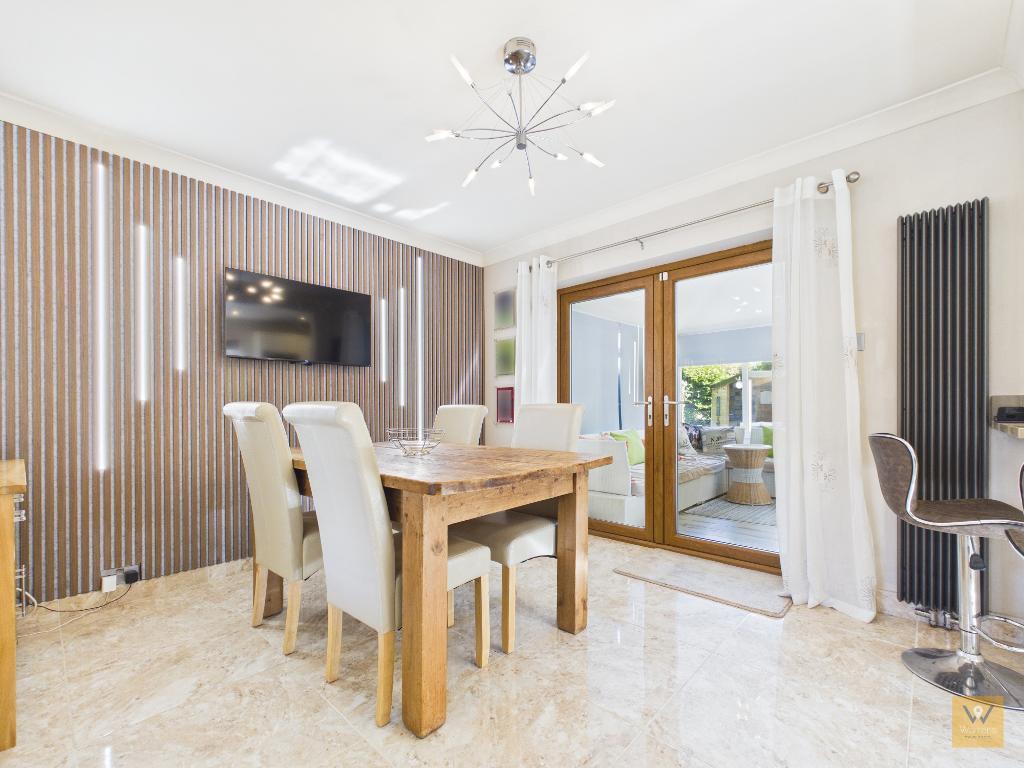 10' 9'' x 10' 10'' (3.3m x 3.31m) Panelled feature wall with inset LED dimmable lighting. Tiled flooring. Ceiling coving. Vertical radiator. Storage cupboard. Double doors to living room and sun room.