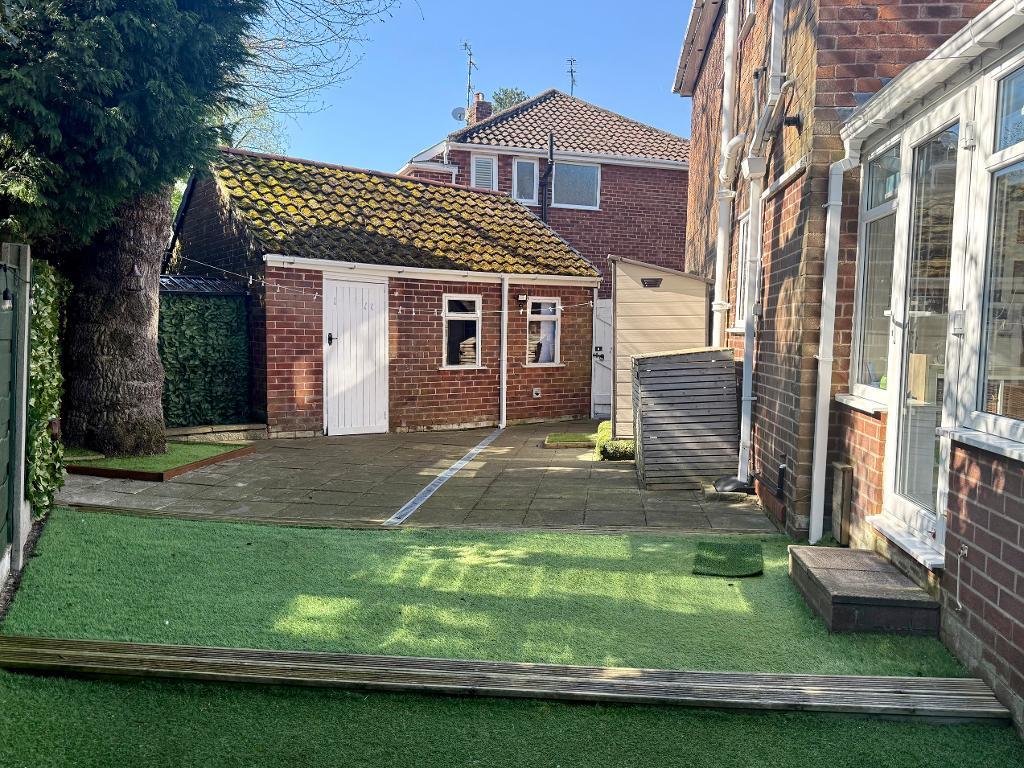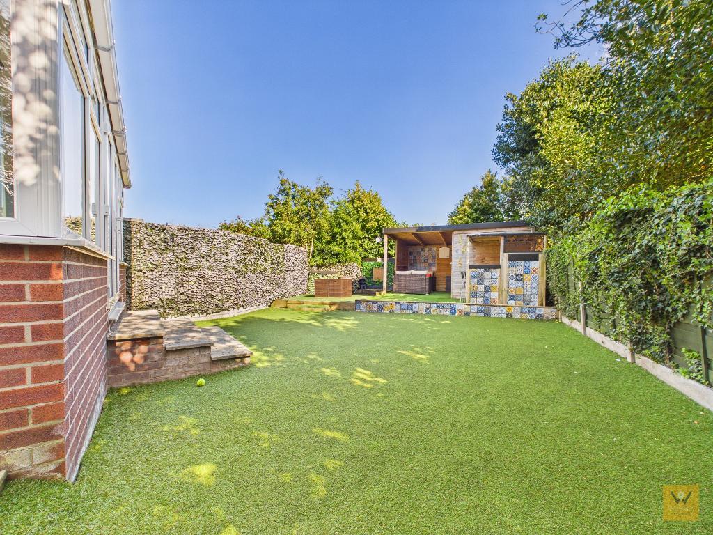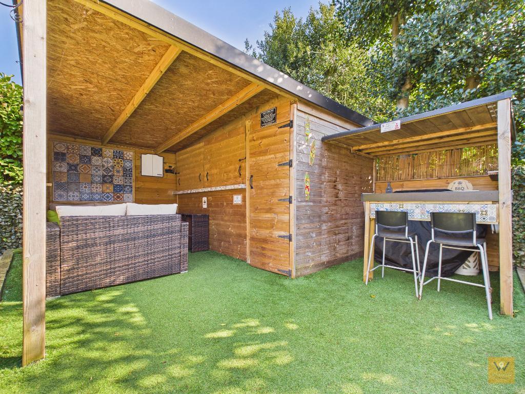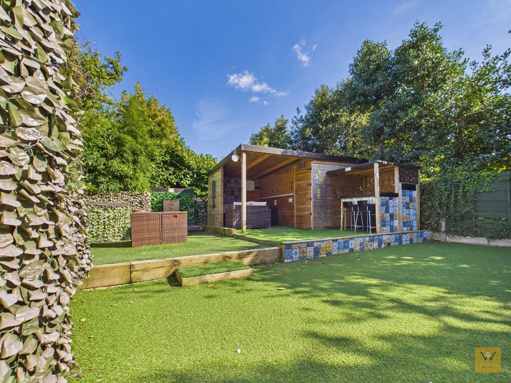 Outside, the home's outdoor offering is sure to impress. The front drive allows off-road parking and leads to a garage, while side gated access opens into the rear garden. Low-maintenance artificial lawn is thoughtfully designed so you can make the most of the gorgeous setting with minimal upkeep. At the rear, a raised area features an outstanding timber outbuilding, currently enjoyed as a use-any-time-of-year garden bar and entertaining space. There's also a block-paved terrace; ideal for outdoor dining and unwinding; plus handy garage access from the side.